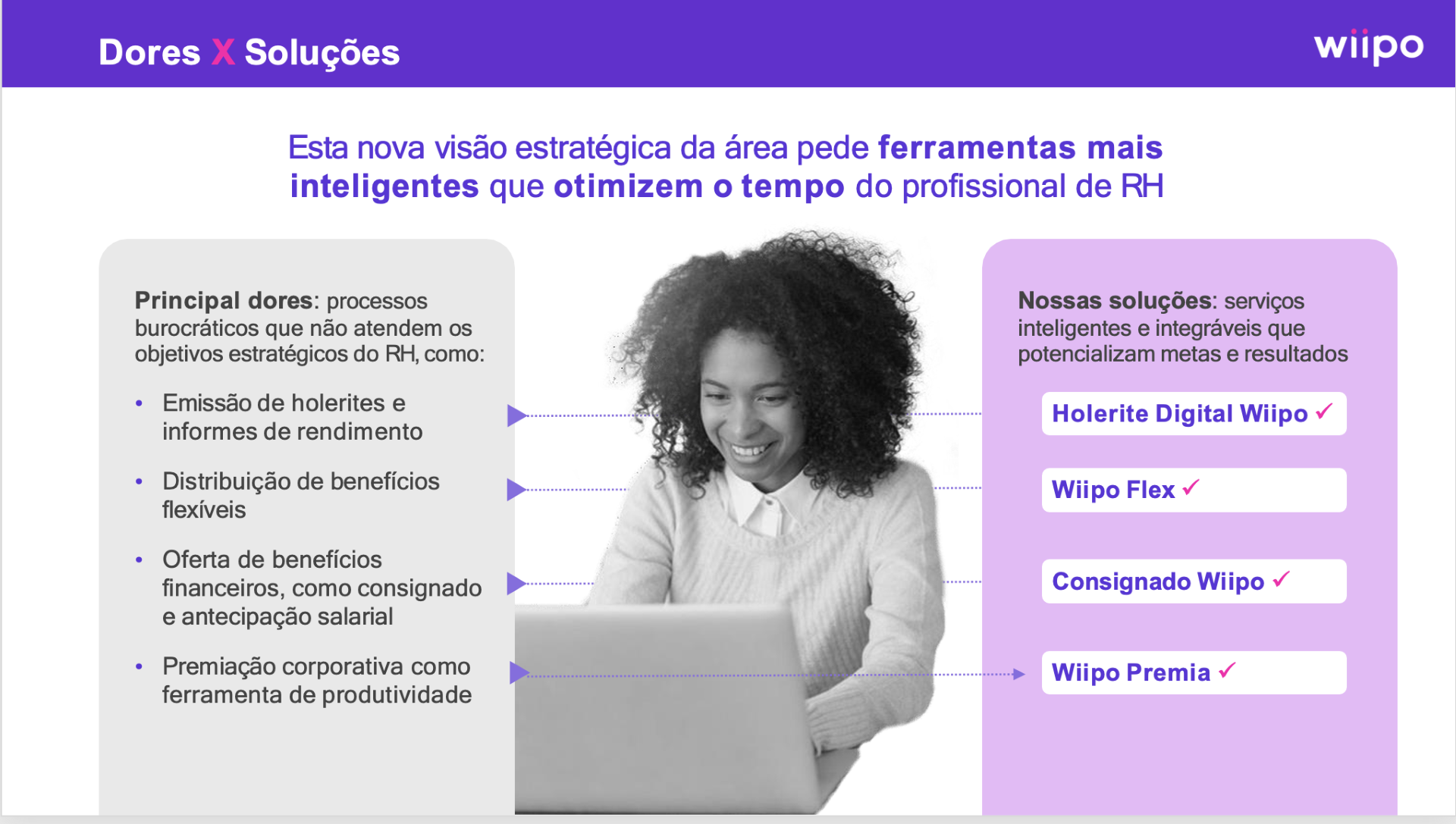 Todos os produtos Wiipo são 100% integrados aos sistemas da Senior e estão a um clique da contratação. Desta forma, conseguimos trazer agilidade, flexibilidade, autonomia e tecnologia de ponta para sua empresa.